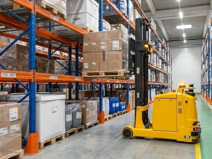 AGV Systems Flexible automated storage and retrieval using autonomous guided vehicles. Forked AGVs navigate narrow aisles to access selective or deep-lane racking, providing scalable automation that adapts to diverse product profiles and facility layouts.